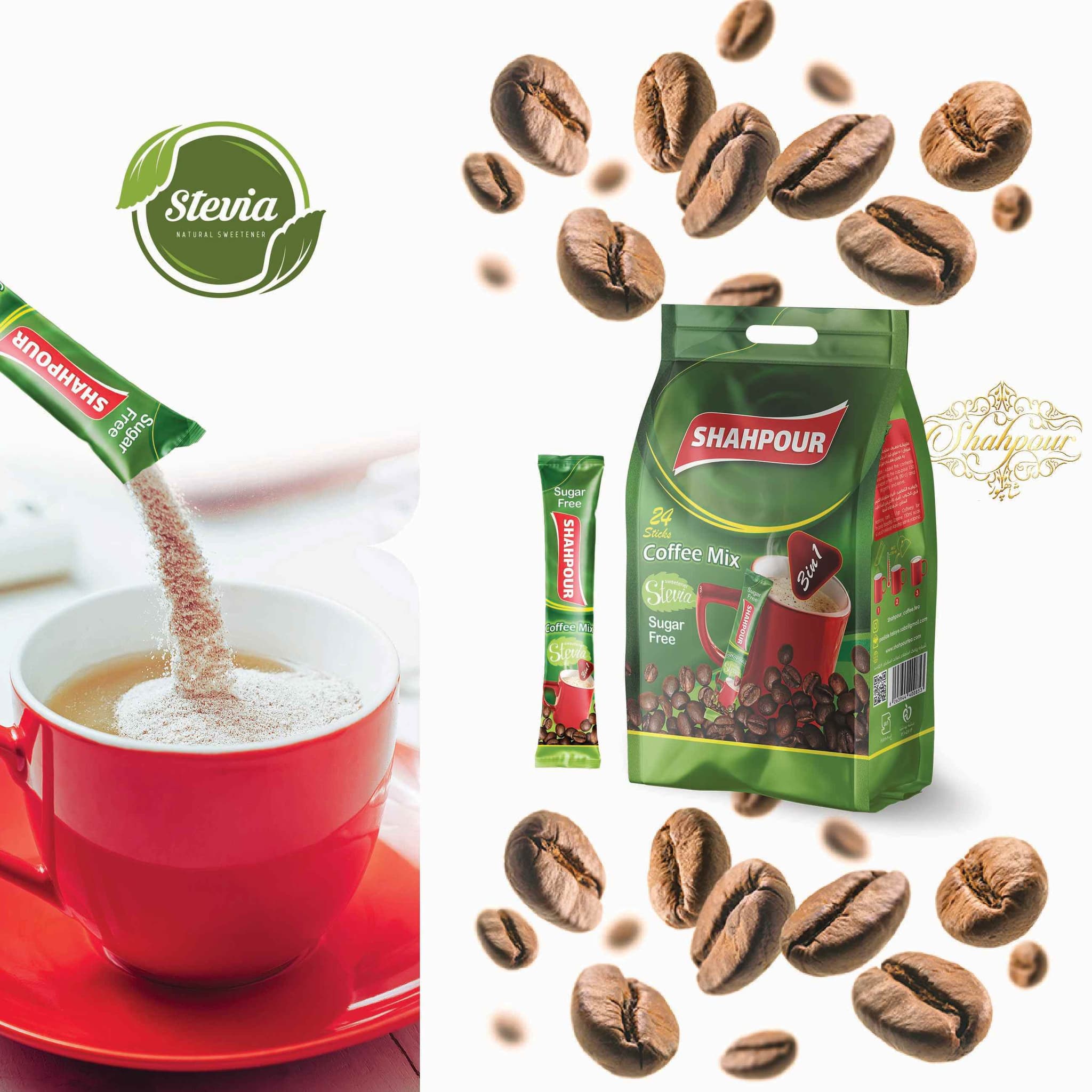پودر مخلوط قهوه فوری ۳*۱ با شیرین کننده استویا