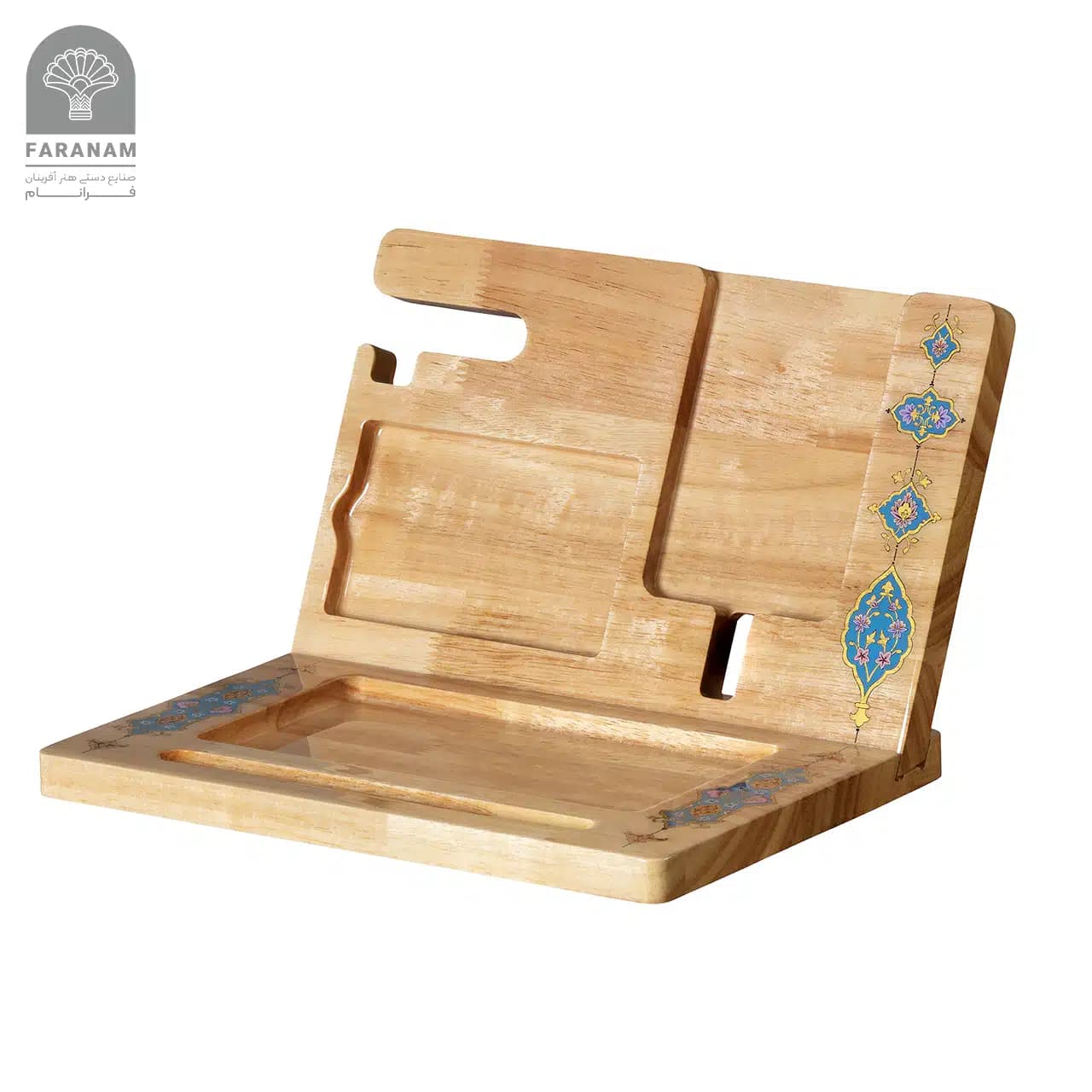 ابعاد: 4\*30\*21 * وزن: 1104 گرم * تهیه شده از چوب رابروود و مزین شده با هنر تذهیب * دارای سه مرحله پلی استر جهت افزایش طول ع