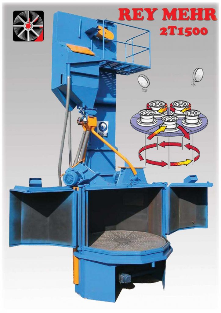 طعات مورد نظر در روی یک میزدایره ای شکل چیده می شود که سطح میز توسط قطعات ضد سایش پوشیده شده است ، پس از بسته شدن درب دستگاه همزمان با چرخش میز توربی