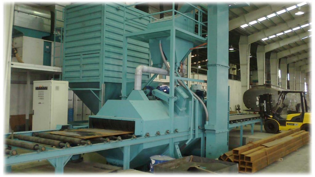 ماشین شات بلاست سازه و استراگچر و شاسی های پیچیده بصورت رولیک کانوایر