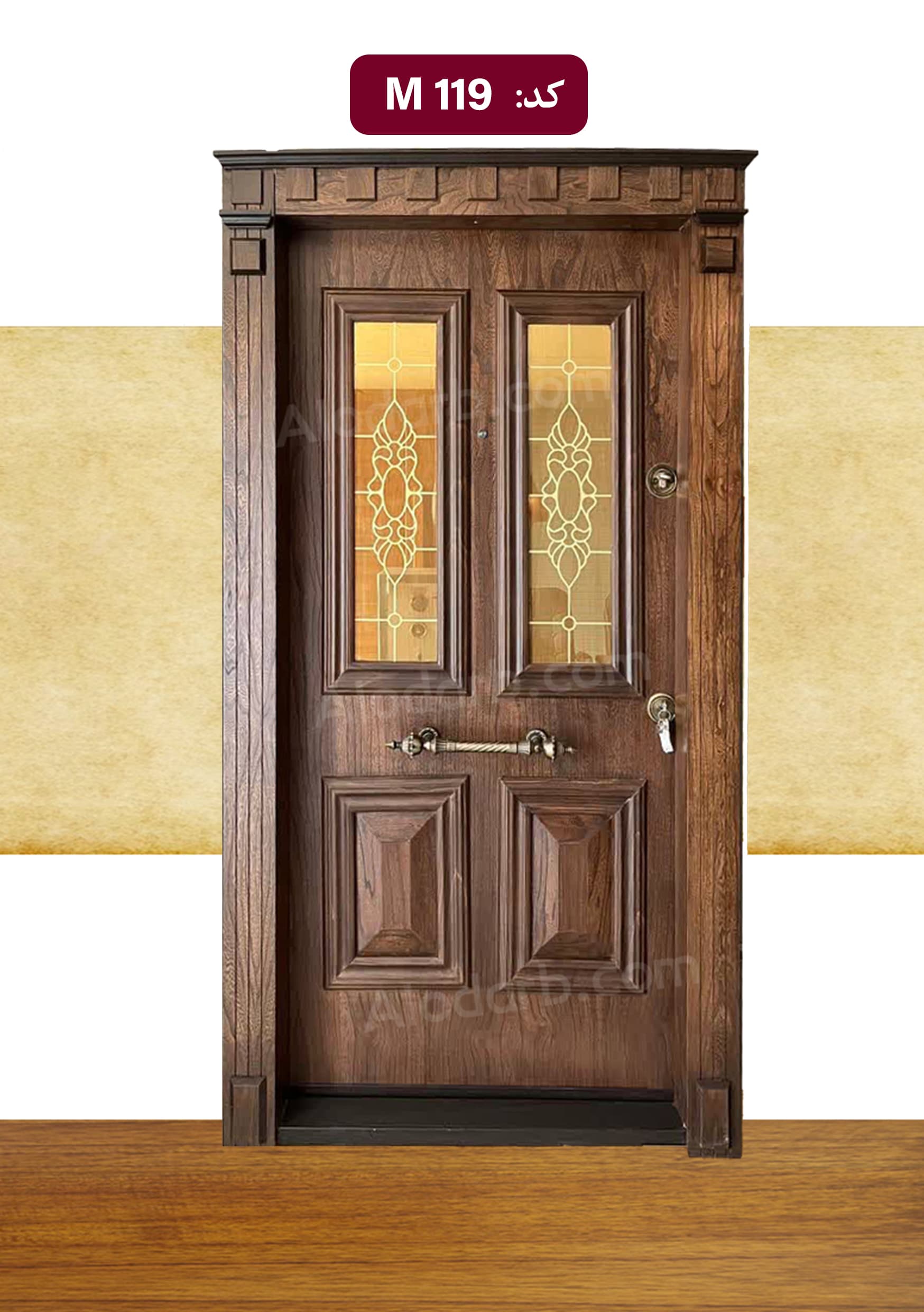 • این درب با روکش طبیعی چوب ملچ ساخته شده است.