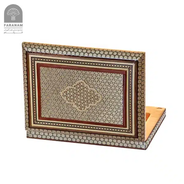 ابعاد: 4\*30\*21 * وزن: 1104 گرم * تهیه شده از چوب رابروود و مزین شده با هنر تذهیب * دارای سه مرحله پلی استر جهت افزایش طول ع