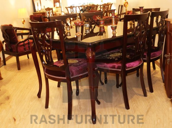 یز ناهارخوری 4 نفره : 104\*104 میز ناهارخوری 6 نفره : 164\*104 میز ناهارخوری 8 نفره : 4/2 \*104 ارتفاع : 78 چوب راش / 3 سال ضمانت طرح