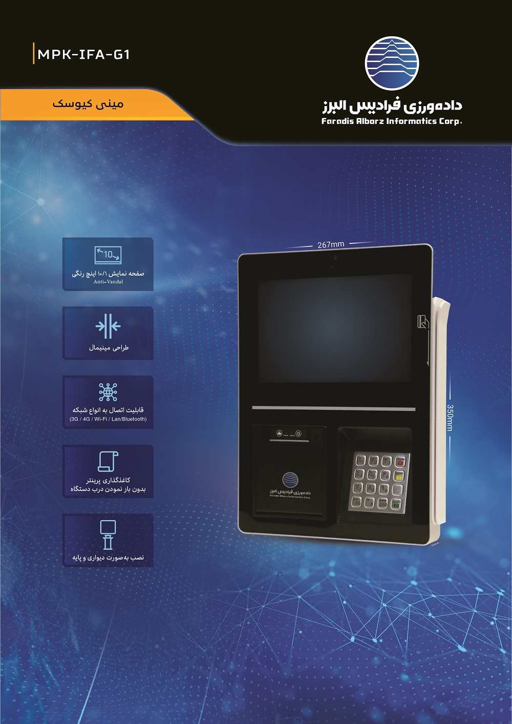 FK201کیوسک دیواری امکان برگشت کارت به مشتری در صورت قطع برق کارت خوان Motorized منطبق با استاندارد EMV EPP منطبق با استاندارد PCI بارکدخ