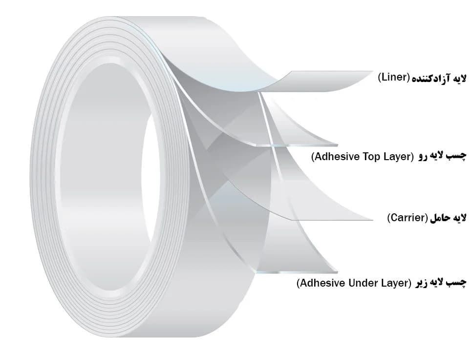 وضیحات: چسب دو طرفه فوم از یک فیلم فوم ساخته شده است که هر دو طرف آن با چسب پوشانده شده است. این چسب معمولا از یک چسب اکریلیک با خواص ویسکوالاستیک
