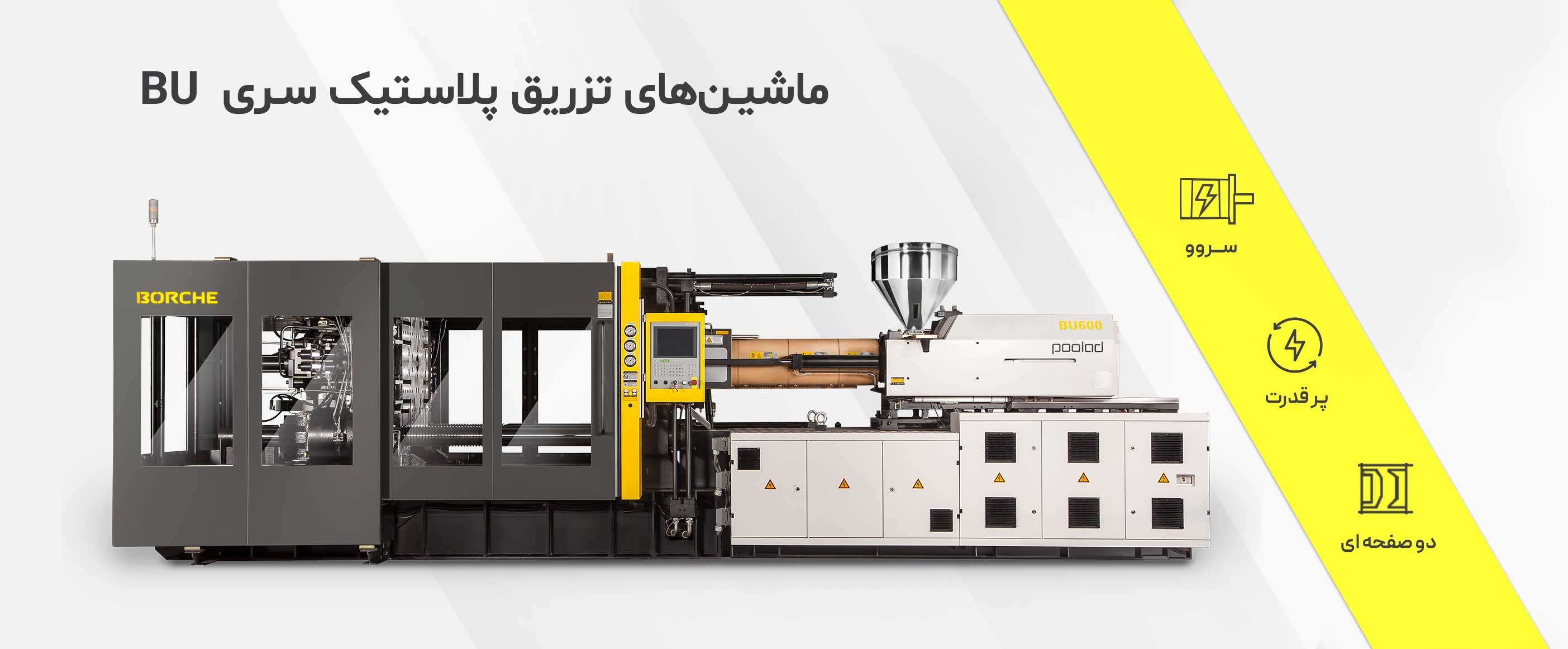 ستگاههای تزریق سری BU پولاد دارای مکانیزم گیره دو صفحهای میباشند که برای تولید انواع قطعات صنعتی با ابعاد بزرگ و عمق زیاد کاربرد دارند. این دستگاه
