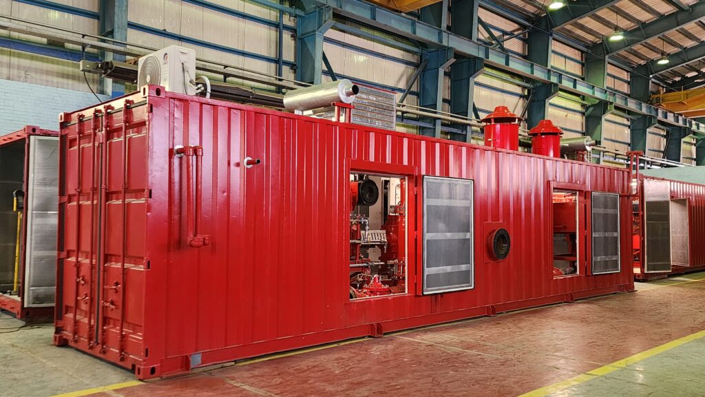 کیج کانتینری پمپاژ آب آتشنشانی، یک پمپخانه پیش ساخته است که بسته به نیاز مشتری در یک و یا چند کانتینر با ابعاد استاندارد حمل و نقل، طراحی میشود. انت