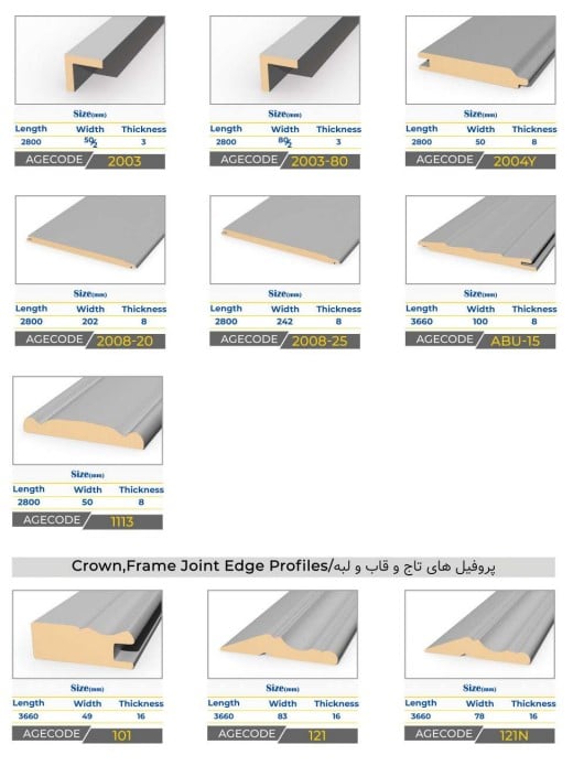 رق های MDF روکش شده در ضخامت 8 و 16 و 18 میلی متر و در ابعاد 1220 در 2800 میلی متر با انواع روکش های مات، هایگلاس و سوپرمات در زنگ های مختلف با استفا