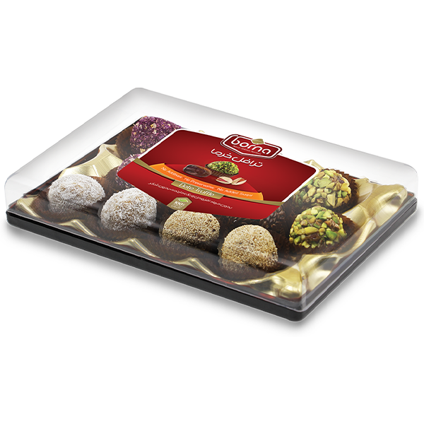 *خواص ترافل خرما:** سرشار از انرژی، فیبر و پروتئین گیاهی تقویت قلب، مغز، سیستم ایمنی و گوارش حاوی چربیهای مفید و آنتیاکسیدانهای طبیعی