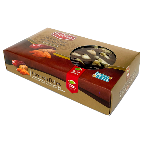 خرما با روکش شکلات تلخ و مغز بادام درختی