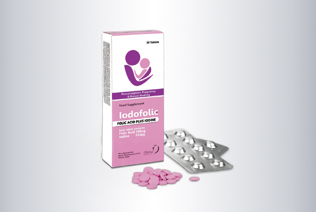 نام ژنریک : ید و اسید فولیک (Folic Acid+Iodine) * نام تجاری : یدوفولیک® (®Iodofolic) * شکل دارویی : قرص خوراکی روکش دار گرد محدب