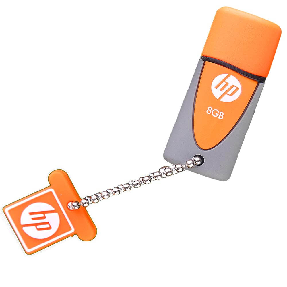 لش مموری با شعار ضد آب به رنگ نارنجی و بنفش با جنس بدنه رابر (یا به اصطلاح عامیانه پاکنی) و هولدر نگهدارنده درپوش محصولی از کمپانی اچ پی که لوگوی دا
